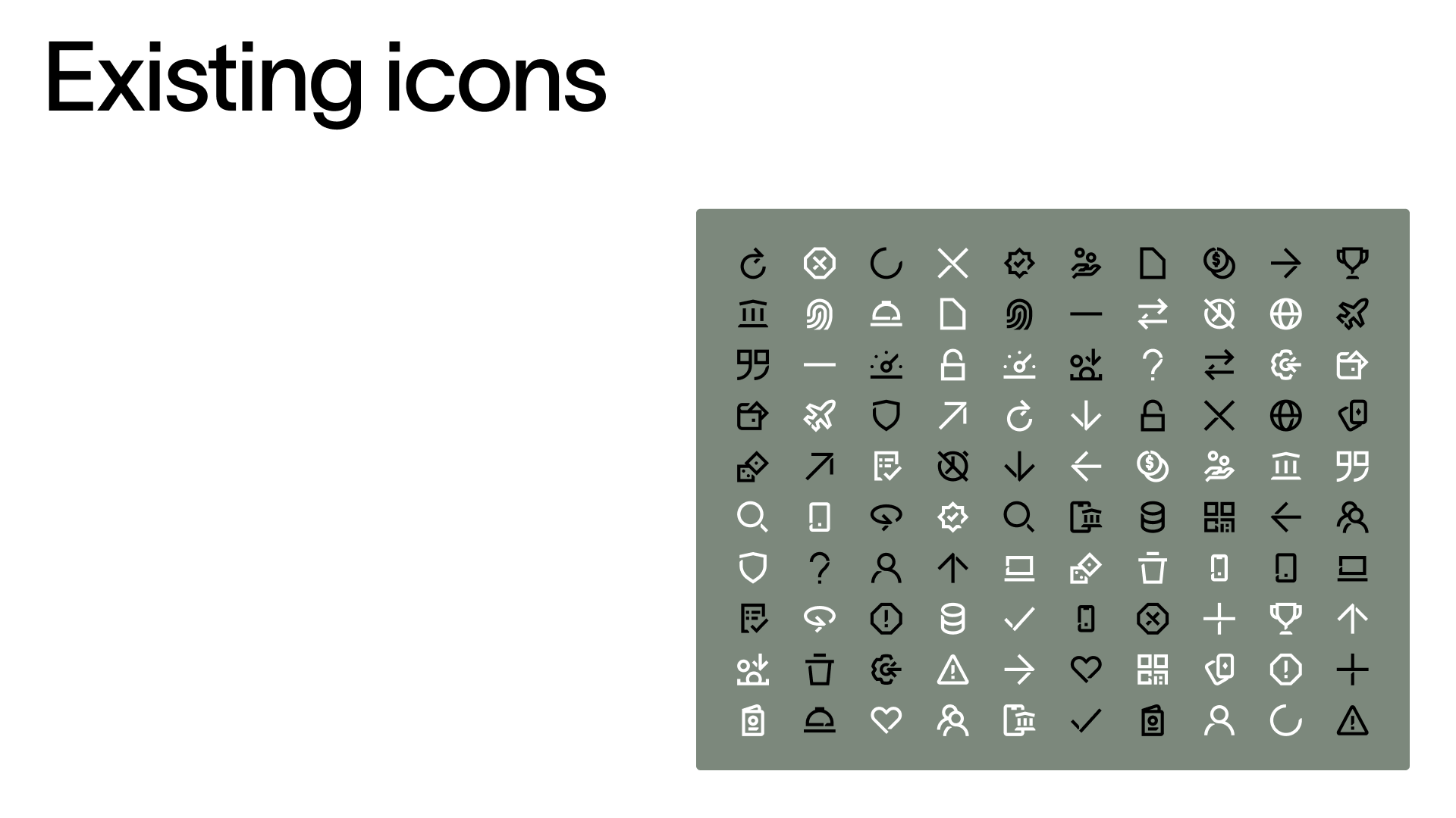 The team recognized that additional icons were needed and decided on a few keywords. I did research, found some inspiration, started experimenting and delivered 9 new icons.